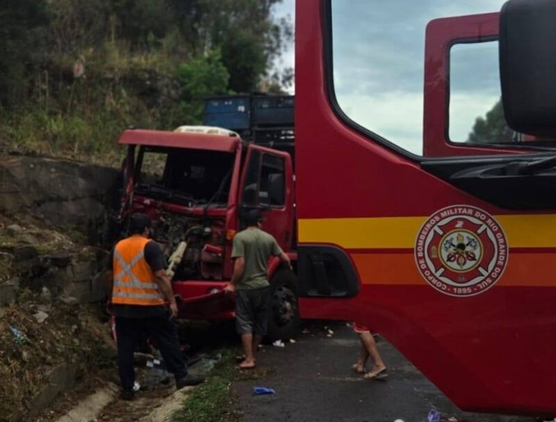 Conforme o Comando de Polícia Rodoviária, um caminhão Ford Cargo trafegava no sentido Caxias/Farroupilha, quando por motivos desconhecidos, não conseguiu parar a tempo e colidiu na traseira do semirreboque de um caminhão Volvo.