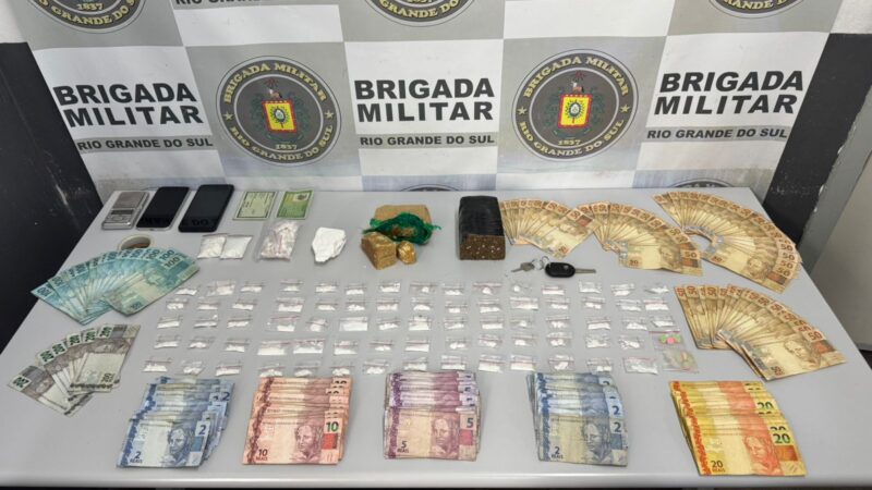 A ação ocorreu durante patrulhamento, quando as equipes realizaram a abordagem de um veículo, sendo localizadas porções de cocaína e dinheiro.