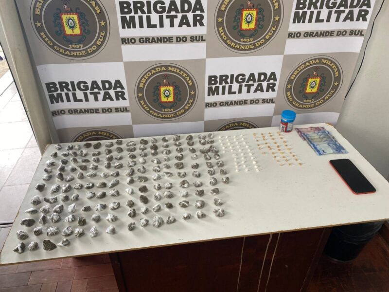 Durante patrulhamento ostensivo em um local já conhecido por ser ponto de vendas de entorpecentes, o homem foi abordado e com ele foram localizadas 36 pedras de crack, 35 porções de cocaína, 151 porções de maconha e R$ 20 em dinheiro. Ele foi apresentado na delegacia de Farroupilha.