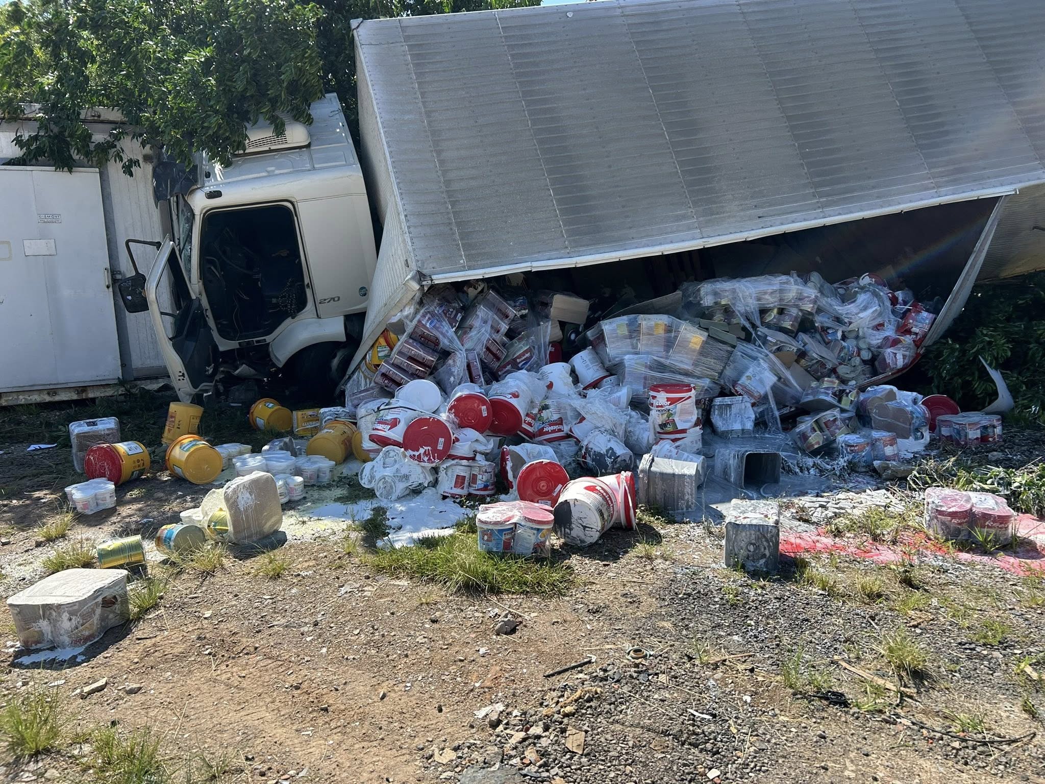 Um acidente foi registrado por voltas das 9h20 desta quinta-feira, 29, nas proximidades do trevo São José, na BR-470, em Carlos Barbosa. Conforme informações, o veículo trafegava no sentido Barão/Carlos Barbosa quando o motorista perdeu o controle da direção, atravessou a via e caiu em um barranco. Apesar da gravidade do acidente, o condutor e o passageiro não se feriram. O caminhão estava carregado com galões de tintas. Bombeiros Voluntários estiveram no local atendendo a ocorrência.