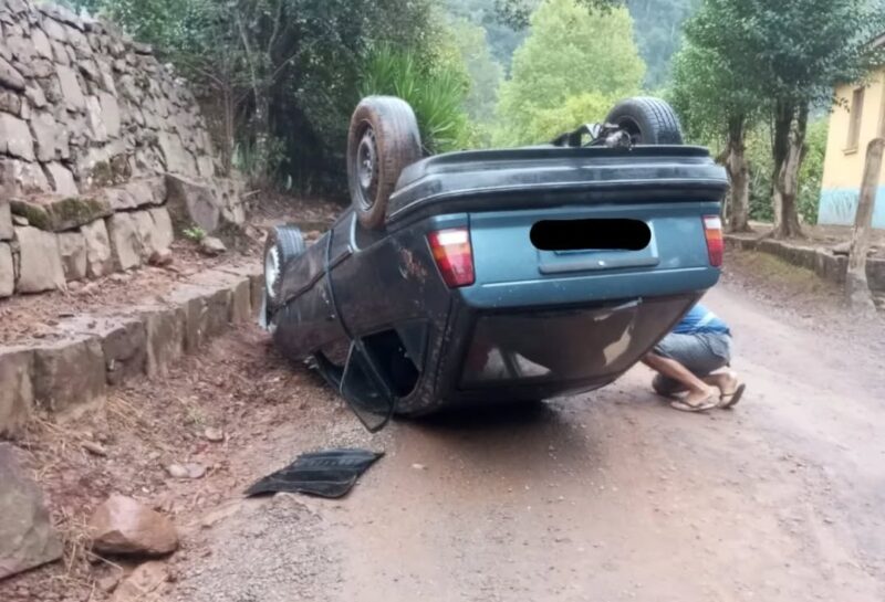 Um Chevrolet Kadett foi encontrado capotado na manhã deste sábado, 7, na Linha Burati, interior de Bento Gonçalves.