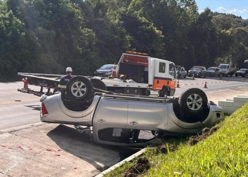 A colisão envolveu uma Chevrolet Montana e uma Nissan Frontier, que capotou no local.