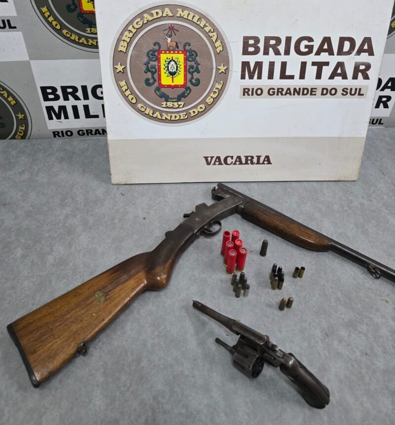 Polícia apreendeu um revólver e uma espingarda, além de diversas munições