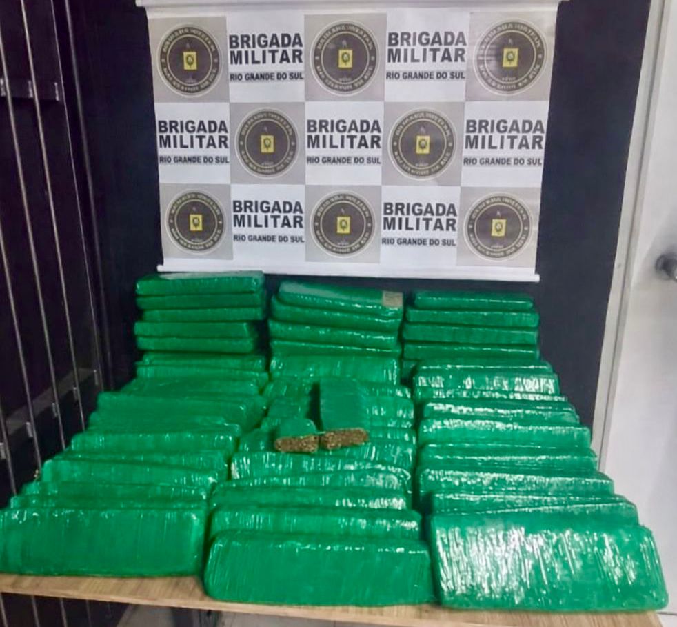 Durante uma averiguação de um veículo Spin, a guarnição localizou em seu interior 63 tabletes de maconha, pesando 50,55 kg, um celular e R$ 200 em dinheiro.