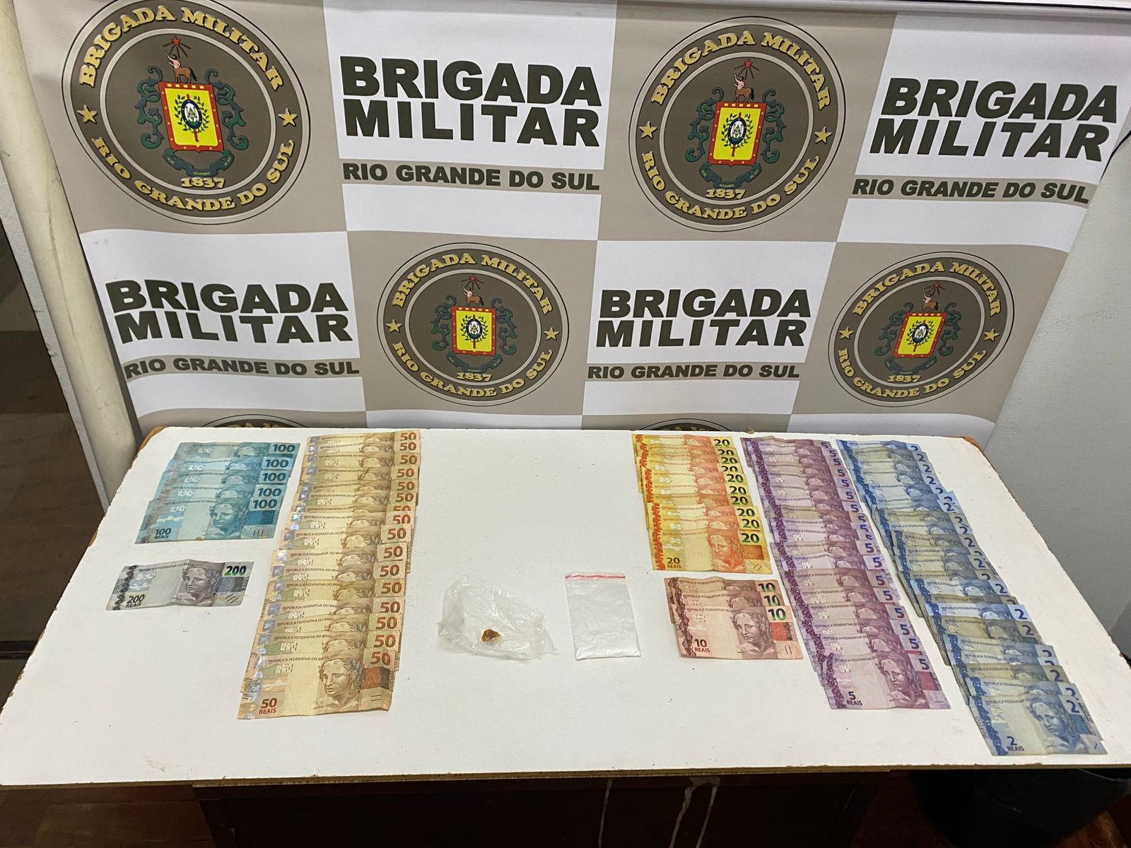 Além dos entorpecentes, a guarnição apreendeu R$ 1.864, fracionados em notas de R$ 2, 5, 10, 20, 50, 100 e R$ 200, característica comumente associada à comercialização de drogas.