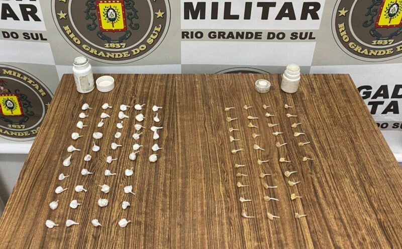 Um indivíduo, de 40 anos, foi detido com 82 porções de drogas por volta das 4h deste sábado, 24, no bairro Industrial, em Farroupilha. De acordo com a Brigada Militar (BM), o suspeito foi avistado e tentou fugir, mas foi acompanhado e abordado. Com ele os policiais apreenderam 36 pedras de crack e 46 porções de cocaína.