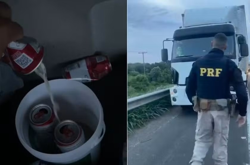 Durante a vistoria na cabine, os policiais encontraram oito latas de cerveja já consumidas. Segundo a corporação, o motorista dirigia pelo acostamento. Ao notar a aproximação da viatura, o condutor teria retornado para a pista principal.