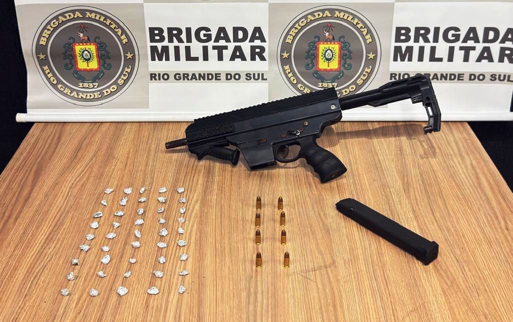 Uma mulher de 21 anos foi presa com uma submetralhadora calibre nove milímetros e drogas na madrugada desta sexta-feira, 16, em Bento Gonçalves. Conforme a Brigada Militar (BM), ela estava em posse de 45 pedras de crack e a arma de fabricação artesanal com oito munições. A abordagem aconteceu no bairro Maria Goreti e após ela foi encaminhada à delegacia.