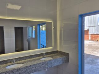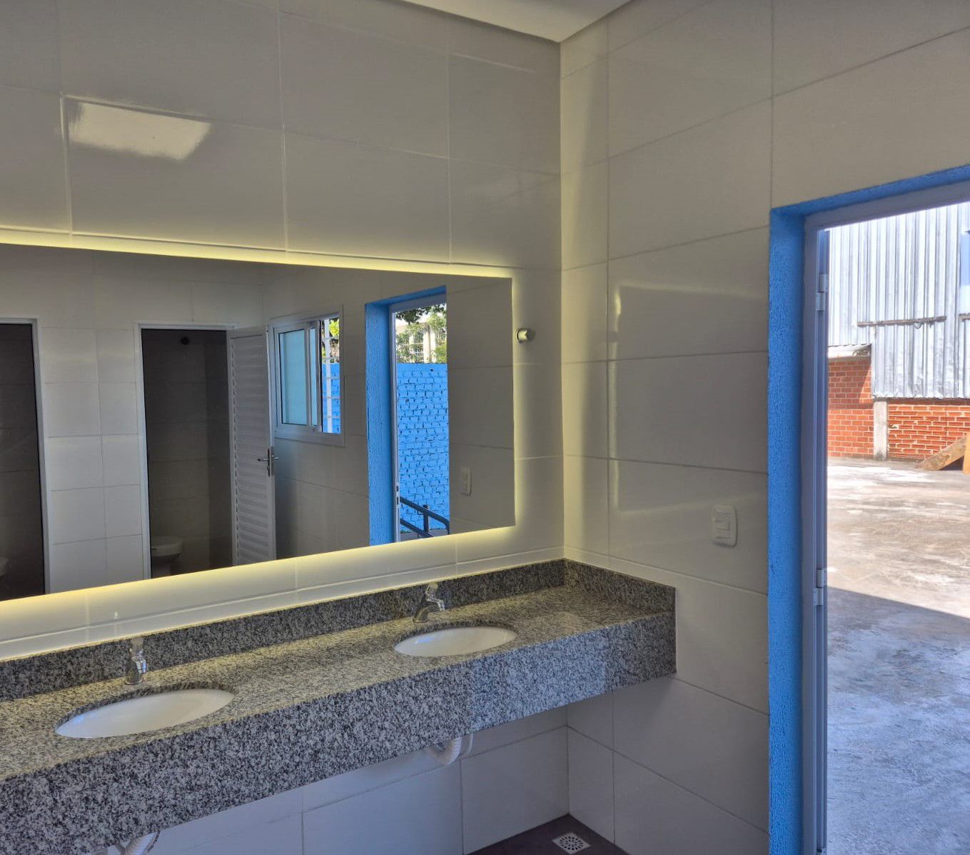 Entre as intervenções realizadas estão a execução de revestimentos, a instalação de equipamentos como louças, metais, vasos sanitários, pias e torneiras, além de adequações completas de acessibilidade. A escola também recebeu nova área coberta, novo acesso para entrada dos alunos, substituição do telhado e das esquadrias, aplicação de revestimentos modernos e atualização das redes elétrica e hidráulica.
