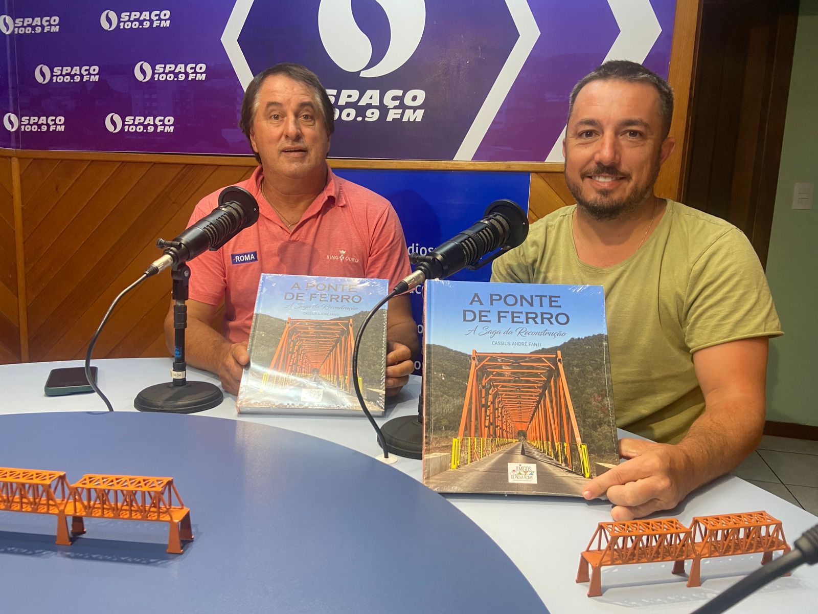 O livro A Ponte de Ferro – A Saga da Reconstrução, apresentado durante a entrevista, registra em detalhes esse processo. A obra documenta a reconstrução da ponte de 124 metros, levada pela enchente de 4 de setembro de 2023, e que foi erguida pela comunidade de Nova Roma do Sul, formada por 3.466 habitantes, em apenas 138 dias. Com registros fotográficos, reportagens e testemunhos diretos, o livro reúne os principais momentos da mobilização e analisa seu impacto social, preservando a memória de um episódio singular na história do município e do Rio Grande do Sul.