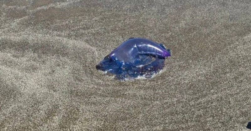 Os guarda-vidas orientam a população a não tocar nas caravelas, nem mesmo quando os animais estiverem encalhados na areia da praia.