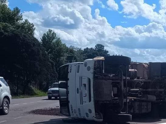 Caminhão da prefeitura de Caxias tomba na RSC-453