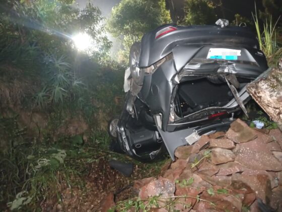 Motociclista fica ferida em acidente, em Bento