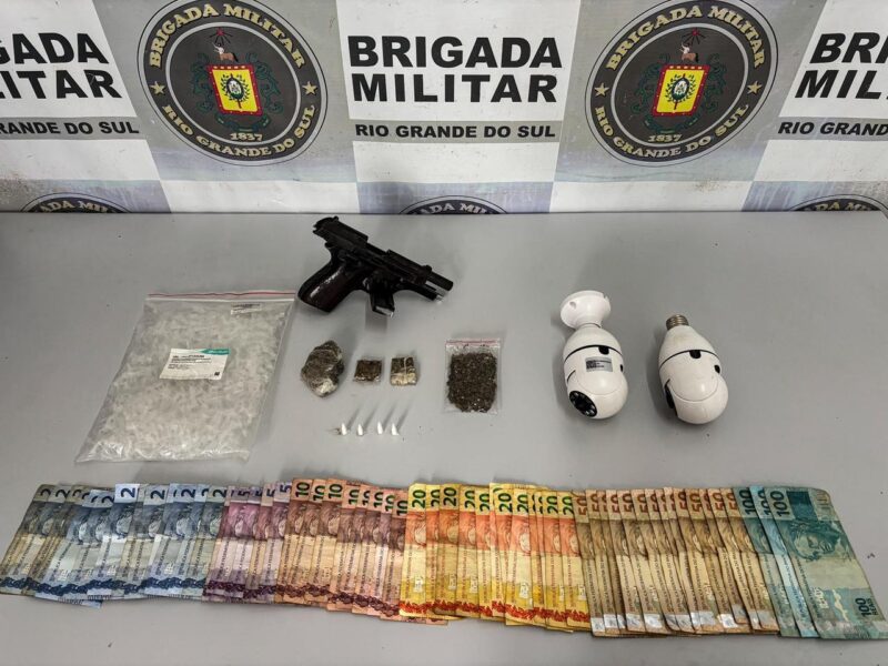 Dupla é presa com drogas, arma e R$ 1,3 mil em Caxias