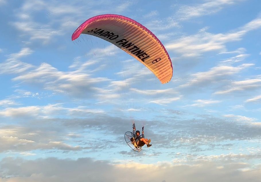 O vereador caxiense Sandro Fantinel aproveitou o dia para realizar um voo de paramotor nesta quinta-feira, 1º de janeiro.